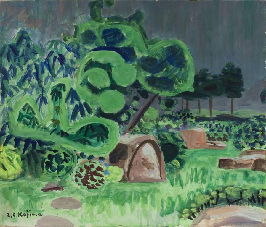 独立美術協会の中心的存在として活躍していた、洋画家・児島善三郎(1893-1962)は、1936(昭和11)年春、武蔵野の大自然をもとめて、住み慣れた代々木から国分寺に移り住みました。「日本人の油絵」を創出するべく、装飾的表現を自らの画風に取り入れた児島は、自宅近郊の田園風景を、おおらかな筆遣いと鮮やかな色彩によって、生き生きと描きあげます。1951(昭和26)年荻窪に転居するまでに生み出された名作の数々は、国分寺時代に児島が画業の頂点を極め、黄金時代を迎えていたとも、見ることもできるでしょう。