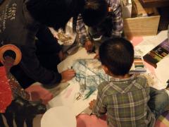羊毛フエルトでつくる「はけの森ことりストラップ」つくり、被災地の幼稚園へ贈る旗飾り作り、様々な紙や文房具をつかったマイカレンダー2012つくり、日光写真ワークショップ、ハニカムペーパーフラワーつくりの各ワークショップ以外にも、自由に絵を描いたり、過去の展覧会のチラシを使ったコラージュをゆったり遊べる「はけの森コーナー」があり、大勢の方に様々なワークショップを楽しんでいただきました。