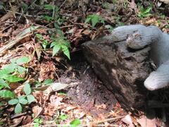 地面に潜む昆虫などを探しています。