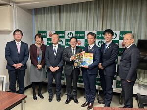 (左から)成本様、真野様、高井様、前田様、白井市長、神山副市長、大熊教育長