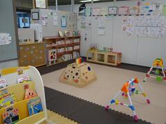 乳幼児専用のお部屋で遊べます。 手遊び、工作の日や誕生日会もあります。