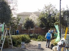 環境政策課との協定により、市内の公園・緑地をメインに市施設の一部の生垣・樹木の剪定をみどり剪定サークルに行っていただき、その作業に必要な脚立、ホウキ、熊手などの道具を市が用意し、剪定で出た枝葉などのゴミの処理は市の委託業者にて処理しています。