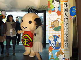 平成24年11月9日に東京学芸大学で「外国人留学生交流会」がありました。 学芸大学の学生さん、地域の方も大勢参加して、大変な盛り上がりとなりました。 こきんちゃんは、会場の入り口でみなさんをお出迎えして、最後にはみんなと一緒に記念写真を撮りました! こきんちゃんと初めて会った学生さんたちに「かわいい!」と握手を求められ、写真をパチリ! こきんちゃん、照れながらも嬉しそうでした。