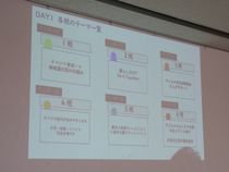 ワークショップは、「小金井市のGOOD/BAD」「小金井市の理想の未来像」、自分の好きや得意なことを活かし「まちの未来づくりのためにやってみたいこと」などについて話し合い、チームごとにテーマを設定しました。